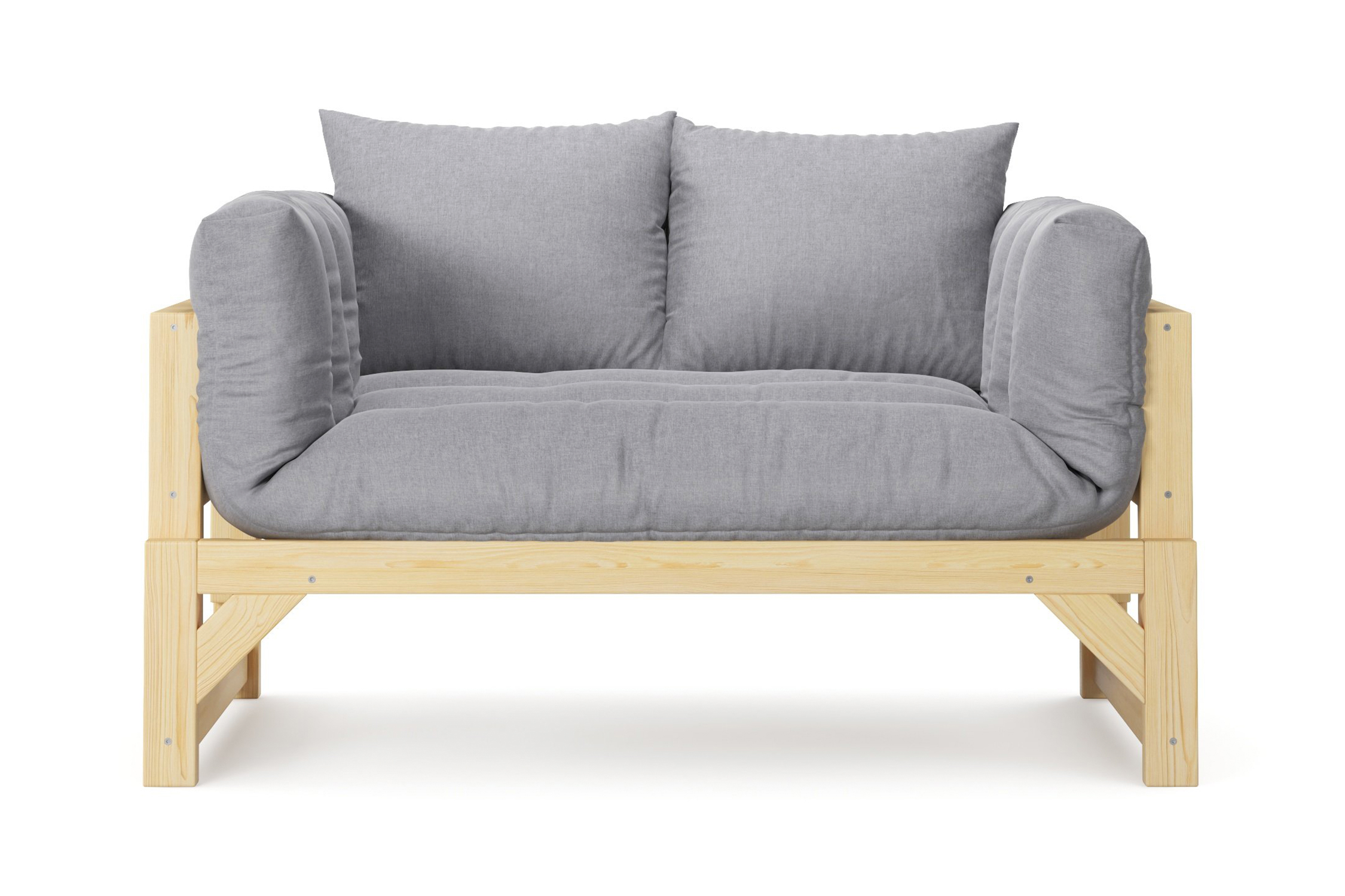 Максимальная нагрузка — 220 кг. Ширина деревянной спинки 130 см. Приспинные подушки, представленные на фото, входят в комплект. Декоративные приобретаются отдельно. Диван продается без лакокрасочного покрытия, под самостоятельную покраску. Высота сиденья без матраса - 31 см, с матрасом 46 см.