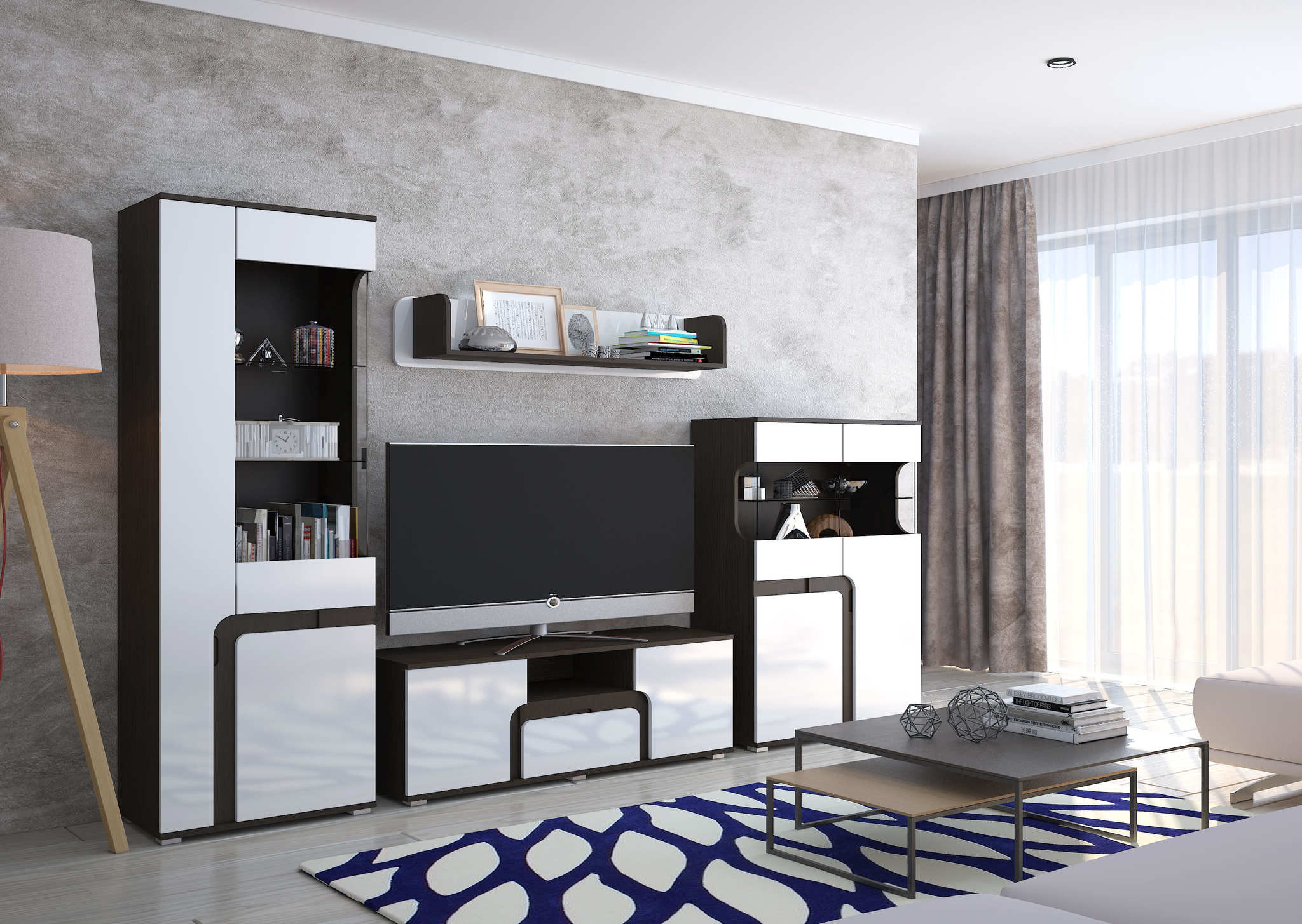 Марсель привлекает внимание любителей нестандартной мебели. Фасады фасады сделаны в оригинальной объемной абстракции, которая как раз выполняет роль ручек, что смотрится очень стильно и свежо для современного интерьера. Для увеличения полезного пространства к гостинной продается вместительный шкаф.