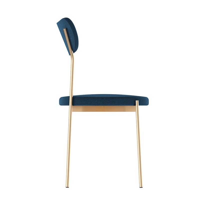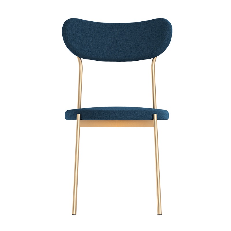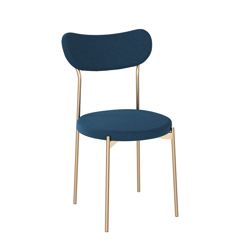 Удобный кухонный стиль в современном стиле. Округлая сидушка и спинка правильной формы обиты прочным и приятным на ощупь велюром синего цвета. Опоры золотые. В комплекте 2 стула.