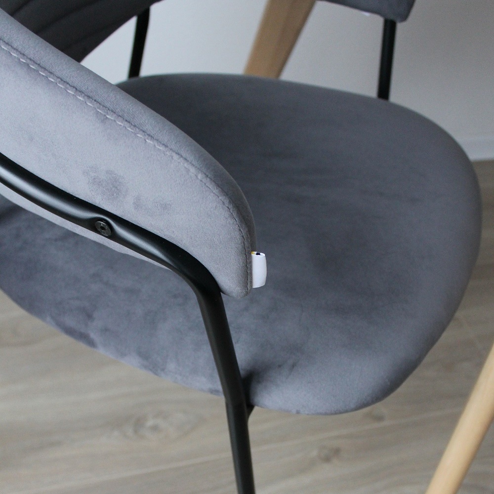Украсить интерьер Вашей современной кухни и добавить комфорта от пребывания за обеденным столом поможет стул Хаг. Изделие имеет прочный металлический каркас,полукруглую спику и мягкое сиденье. Несмотря на визуальную легкость, это надежная модель выдерживает нагрузку до 120 кг. Особенности черные металлические опоры материал обивки - устойчивый к деформациям и приятный на ощупь серый бархат максимальная нагрузка - 120 кг