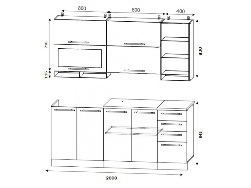 • Высота шкафов: Верхние 700 мм/Нижние 850 мм